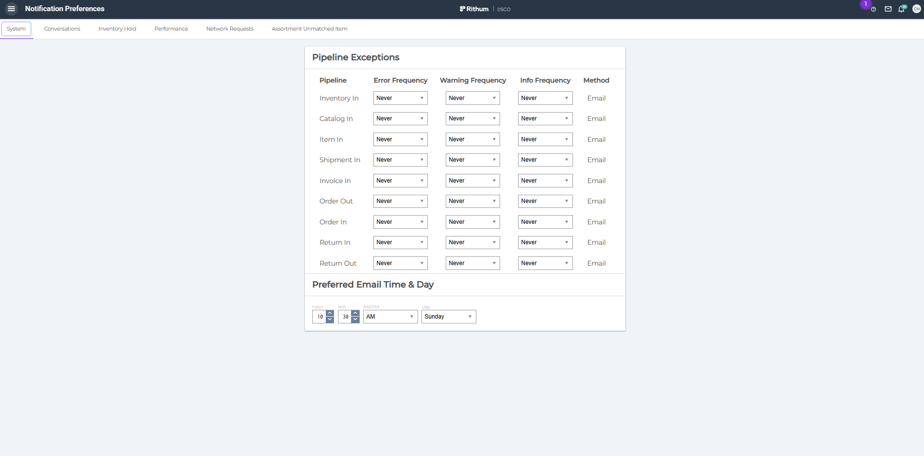 - Follow this link: https://app.dsco.io/notification-preferences